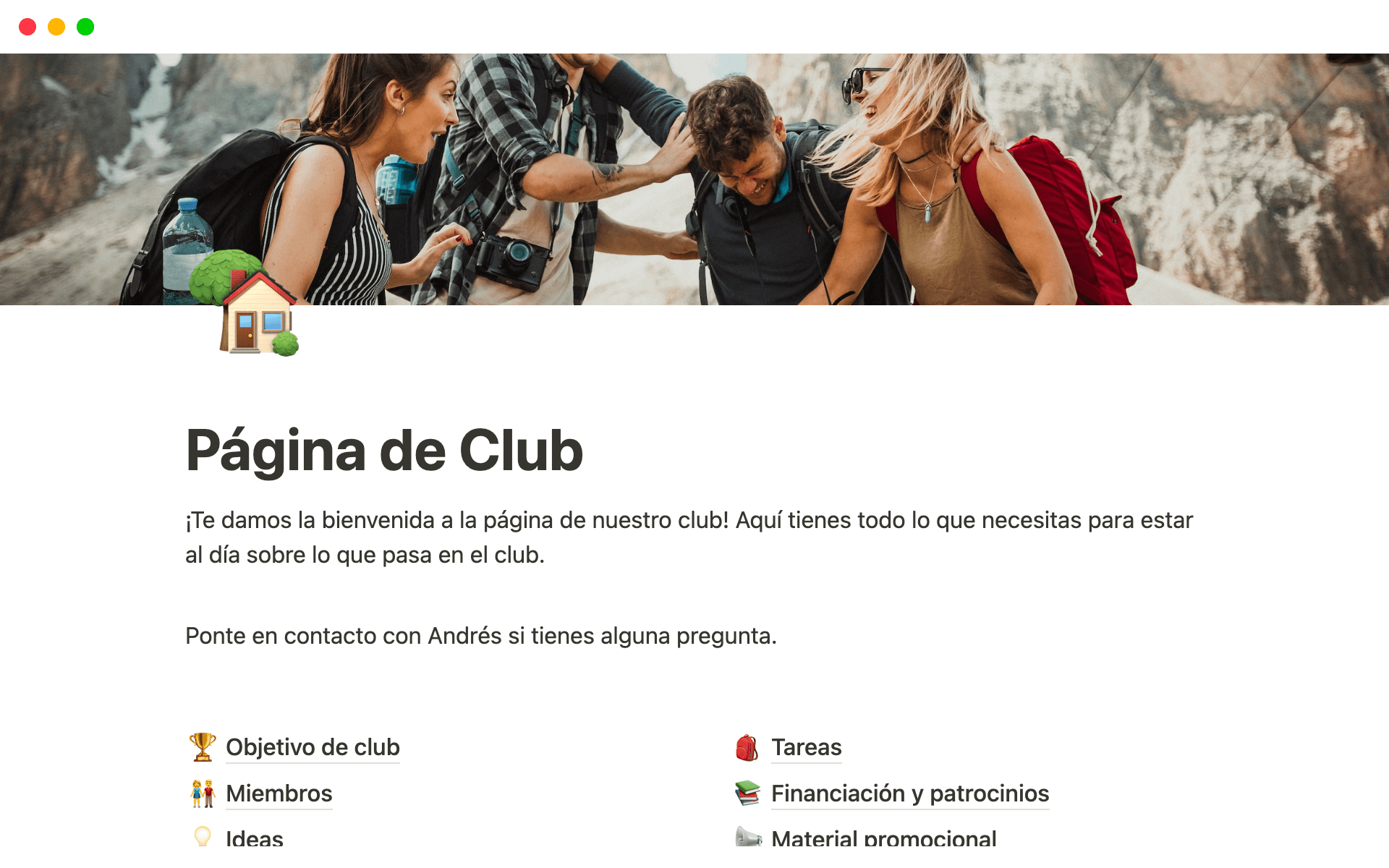 School isn't just about school these days — if you're running a club or managing a group project, this template can help you capture all of your team's knowledge. You can keep your mission statement, tasks, and sponsorship apps neatly organized in this homepage. Share it with current and future team members so they can find everything they need to push projects forward.