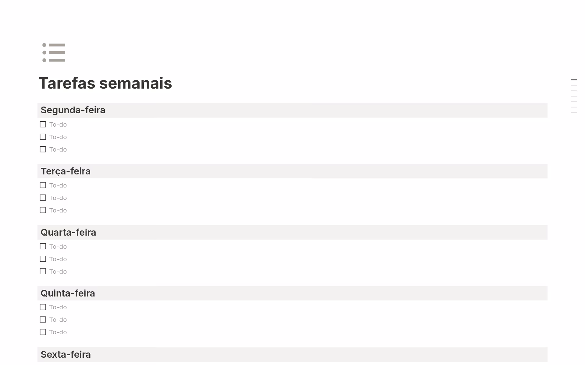 O modelo é perfeito para quem checklist "gameficado", você pode alterar as predefinições, adicionar mais tarefas e focar em faze-las com base na sua rotina. Ótimo modelo